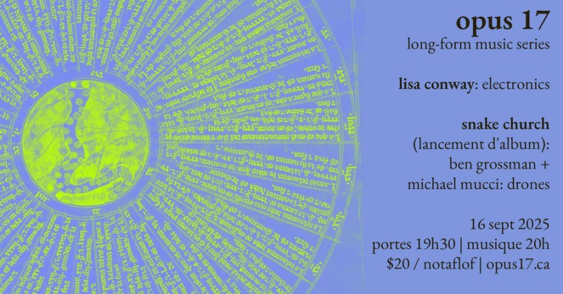 Event: Opus 17 Et Mardi Spaghetti Présentent: Lisa Conway, Snake Church (lancement D’al |