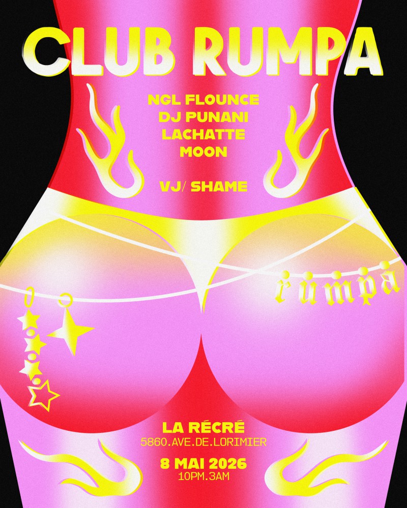 | Event: Club Rumpa: NGL Flounce, DJ Punani, Moon, LaChatte, SHAME |