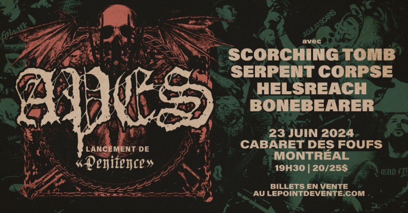 | Event: APES (QC), SCORCHING TOMB (MTL), SERPENT CORPSE (MTL), HELSREACH (HFX), BONEBEARER (MTL) |