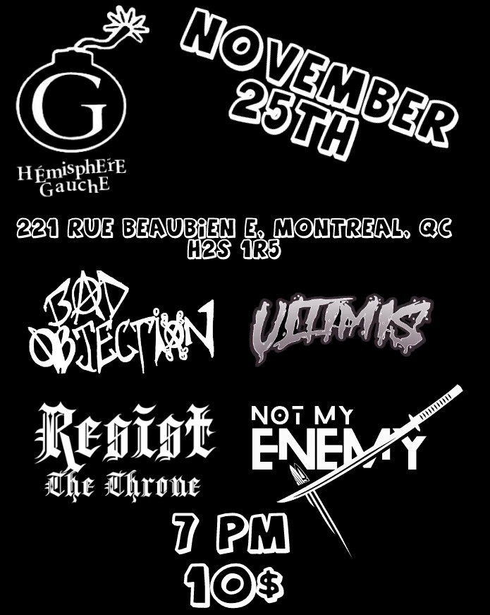 | Event: BAD OBJECTION NOT MY ENEMY ULTIMIS RESIST THE THRONE LIVE |