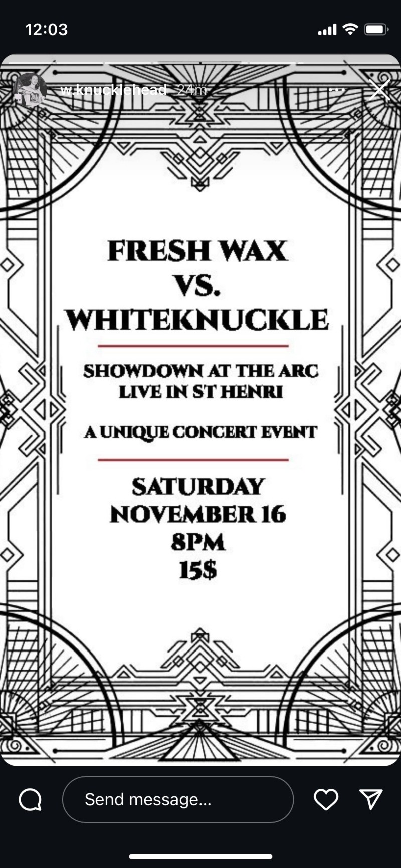 | Event: Battle Of The Bands : White Knuckle VS Fresh Wax |