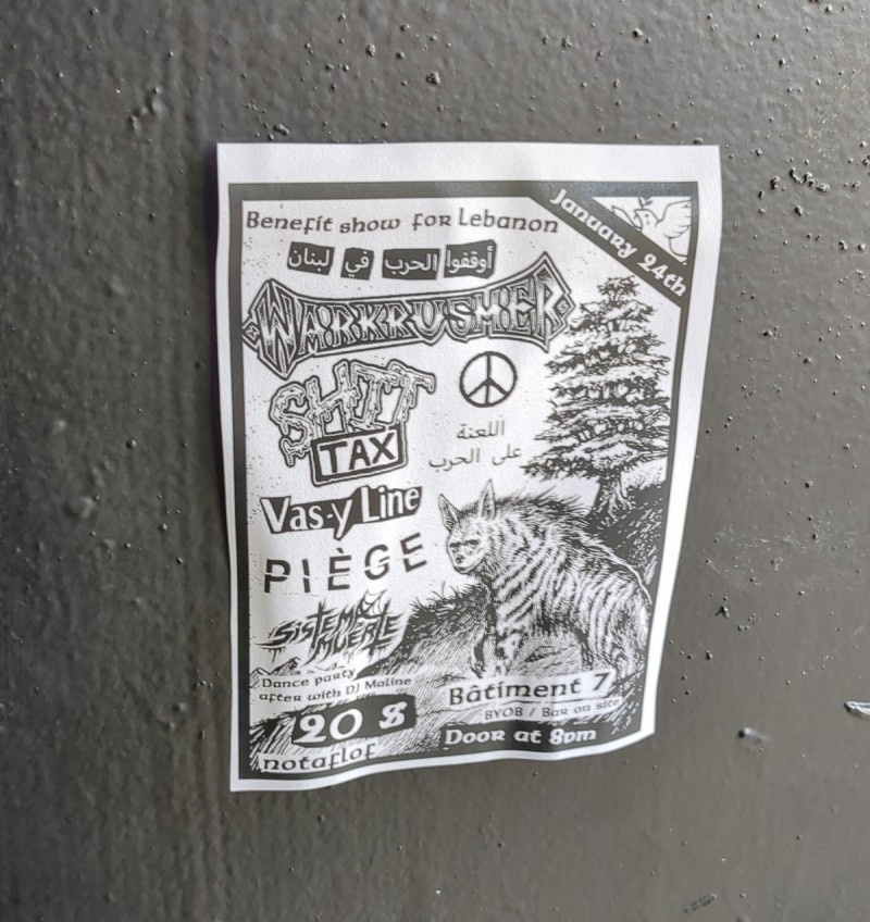 | Event: Benefit Show For Lebanon Ft WARKRUSHER, SHIT TAX, VAS-Y LINE, PIÈGE, SISTEMA DE MUERTE Dance Party |