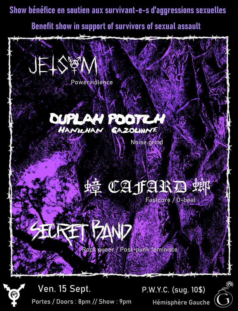 | Event: Benefit Show In Support Of Survivors Of Sexual Assault - Jetsam, Duplah Pootch, Cafard Special Guest |