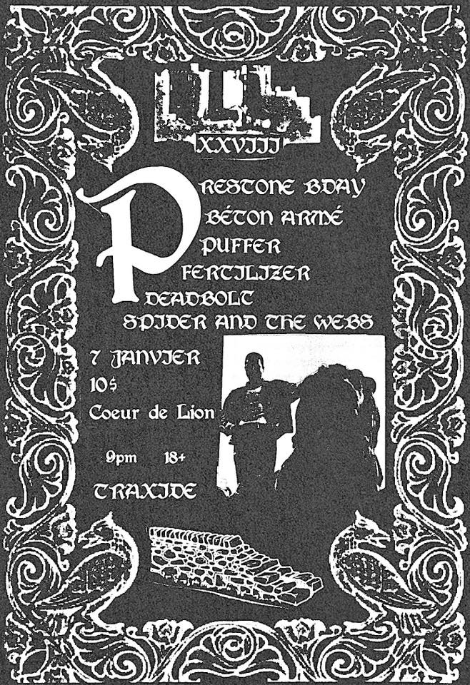 | Event: BÉTON ARMÉ - PUFFER - FERTILIZER - DEADBOLT - SPIDER AND THE WEBS |