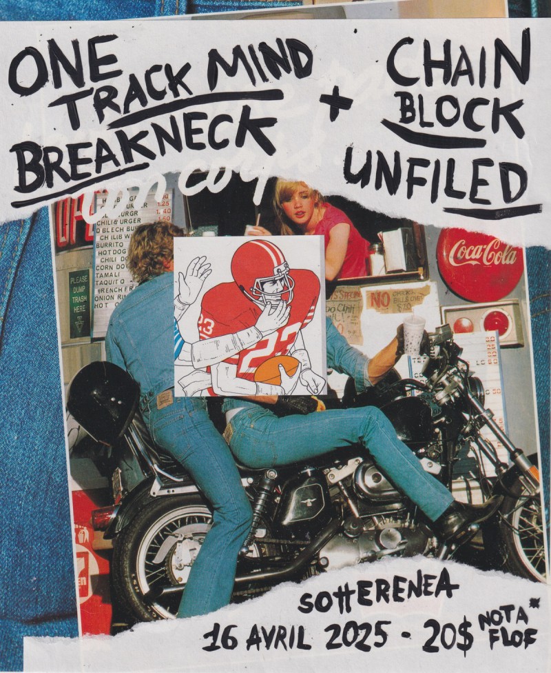 | Event: BREAKNECK (HFX), ONE TRACK MIND, CHAIN BLOCK, UNFILED |