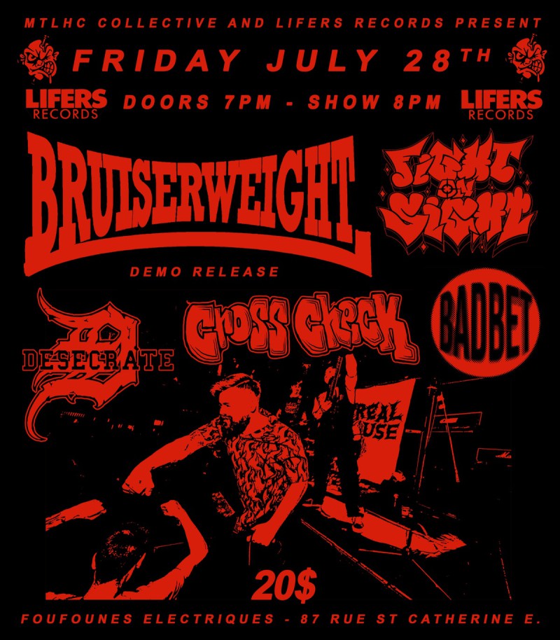 | Event: BRUISERWEIGHT Demo Tape Release Show With DESECRATE (mtl), FIGHT ON SIGHT (hamilton), CROSSCHECK (mt |