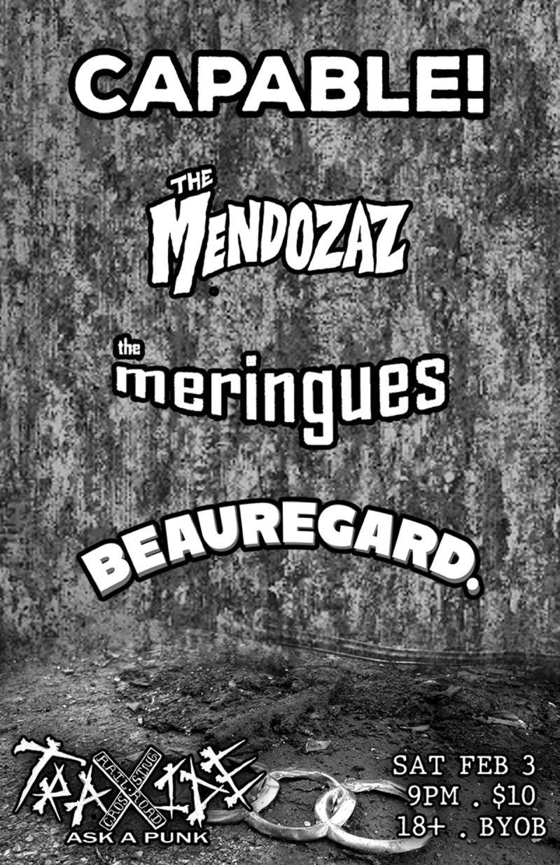 | Event: Capable!, The Mendozaz, The Meringues, Beauregard. At Traxide |
