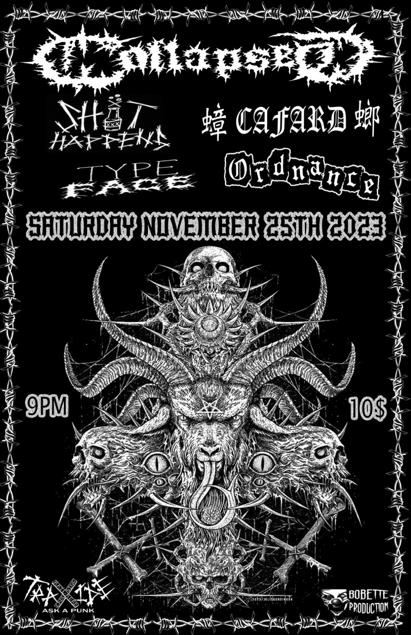 | Event: Collapsed, Shit Happens, Cafard, Ordnance, Typeface |