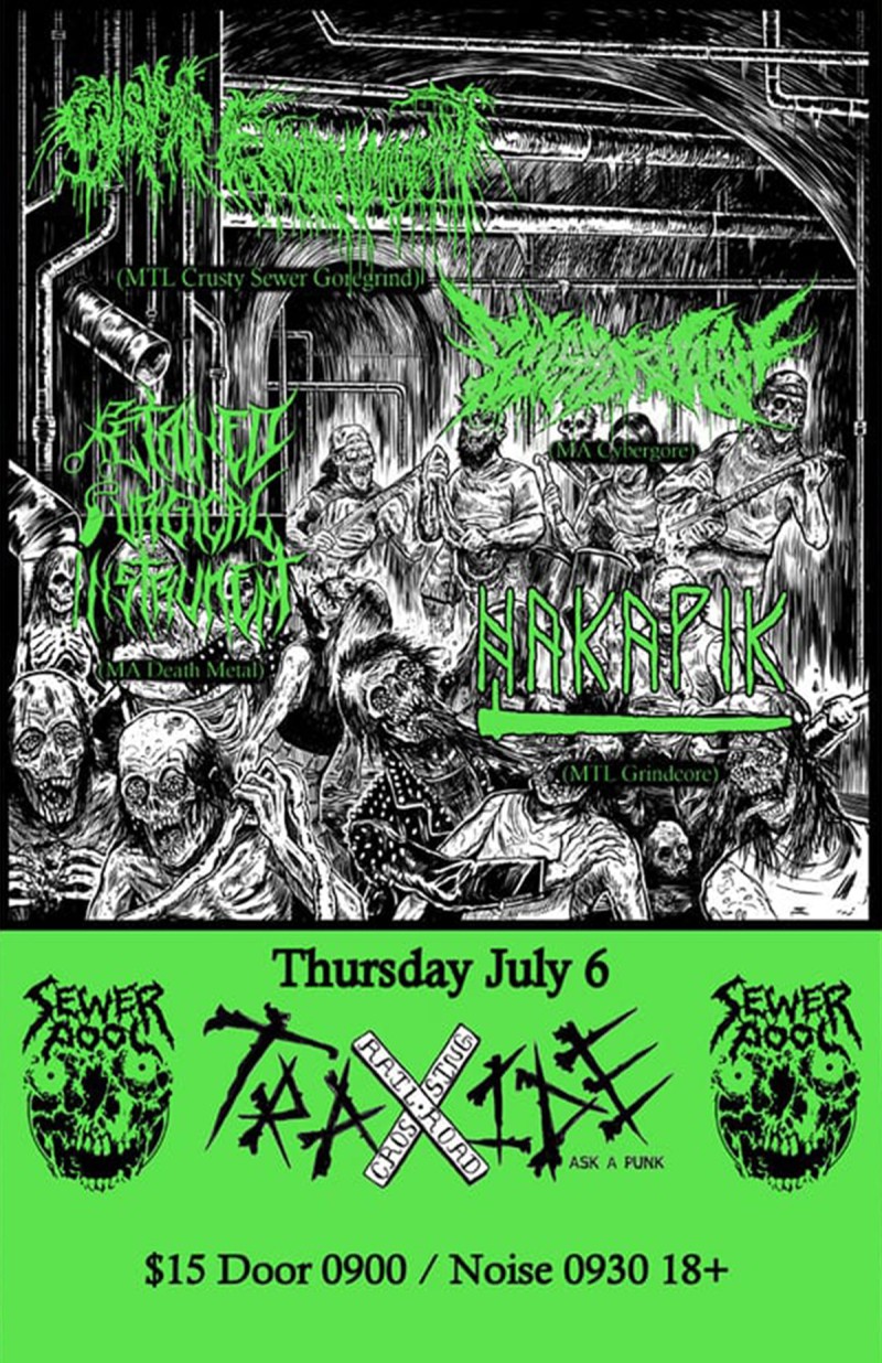 | Event: Cystic Embalmment, Scissorhash, Retained Surgical Instrument, Hakapik @ Traxide July 6 |
