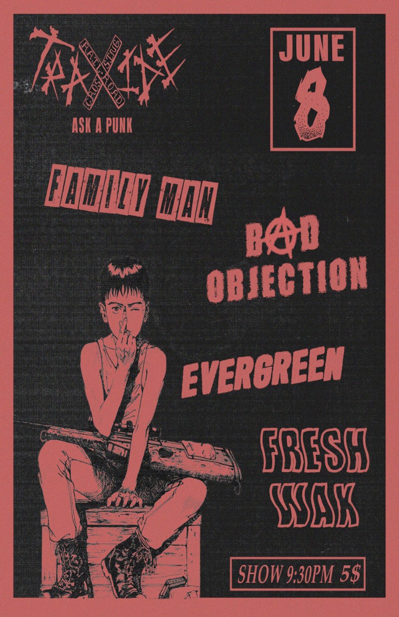 | Event: FAMILY MAN BAD OBJECTION EVERGREEN FRESH WAX LIVE |