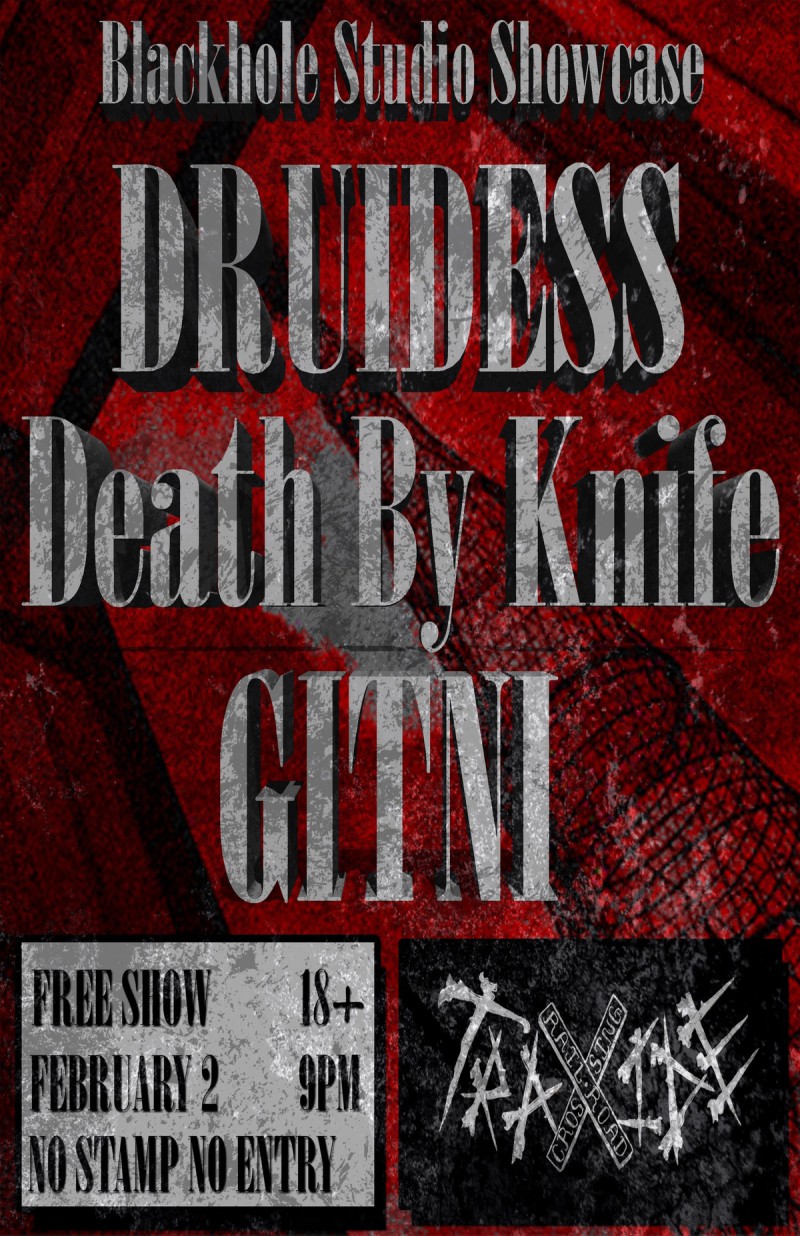 | Event: FREE SHOW @ TRAXIDE | DEATH BY KNIFE, DRUIDESS, GITNI |