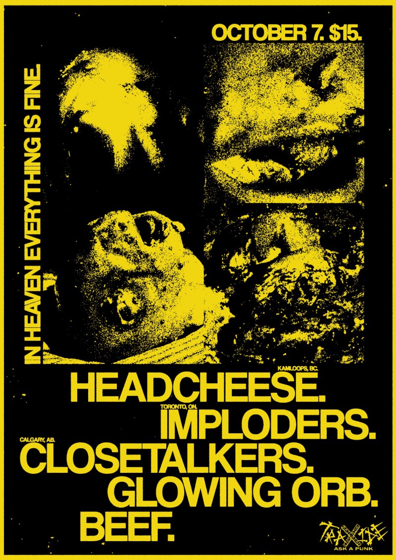 | Event: HEADCHEESE, IMPLODERS, CLOSETALKERS, GLOWING ORB, BEEF |