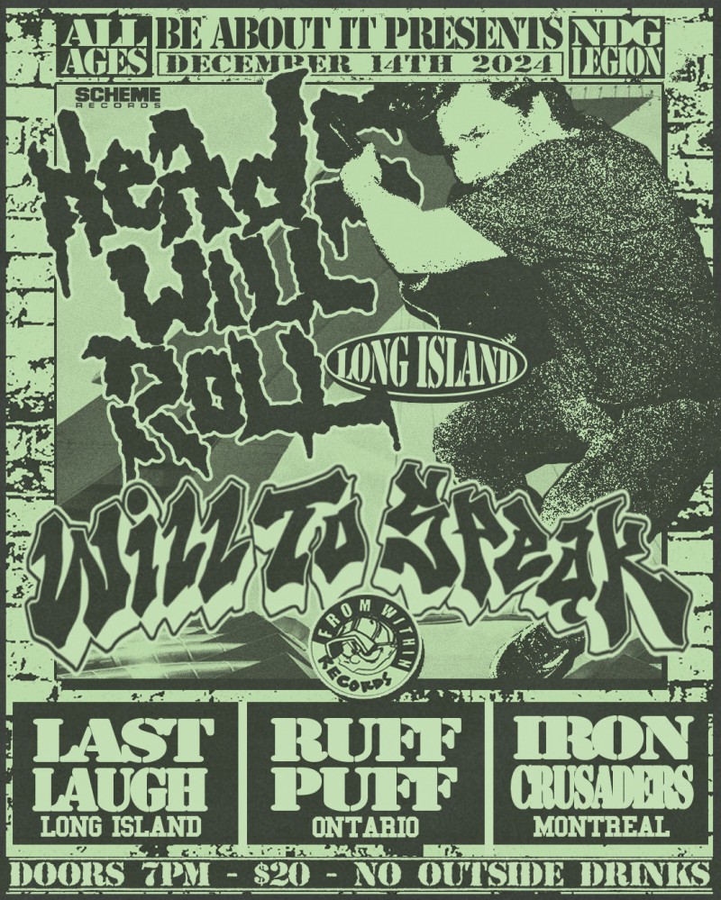 | Event: HEADS WILL ROLL (NY) WILL TO SPEAK LAST LAUGH (NY) RUFF PUFF (ON) IRON CRUSADERS |