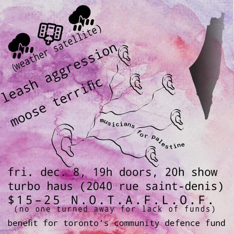 | Event: LEASH AGGRESSION, MOOSE TERRIFIC: Benefit For Toronto's Community Defense Fund |