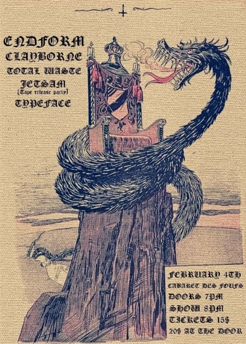 | Event: ENDFORM, CLAYBORNE, TOTAL WASTE, JETSAM, TYPEFACE |