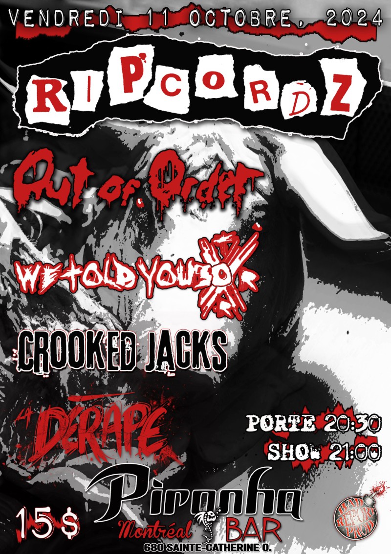| Event: Ripcordz, Out Of Order, We Told You So, Crooked Jacks And La Derape |