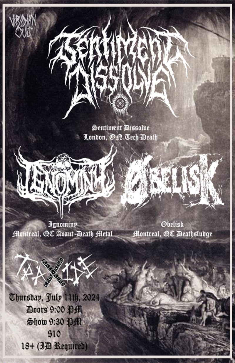 | Event: Sentiment Dissolve (ON), Ignominy, Øbelisk @ Traxide - July 11th, 2024 |