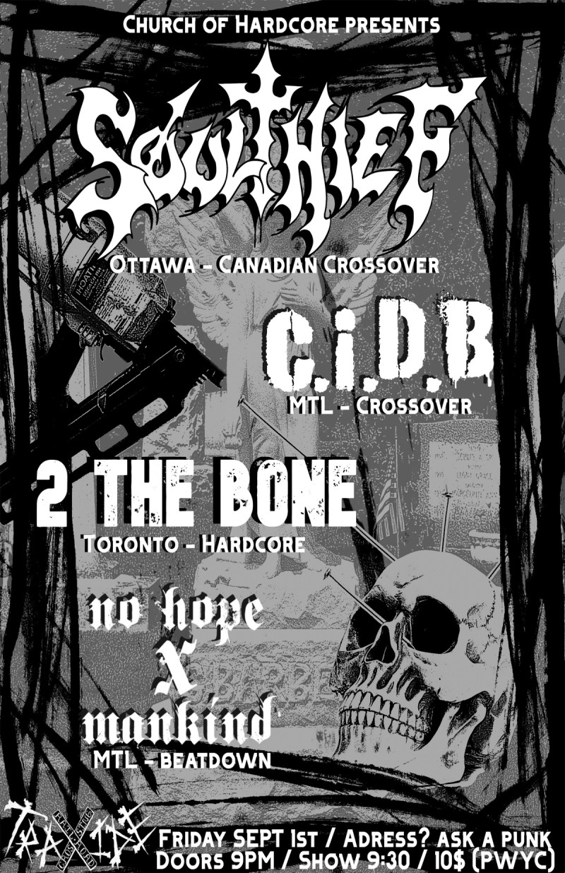 | Event: Soulthief, CiDB, 2 The Bone, No Hope X Mankind @ Traxide, Sept 1st 2023 |
