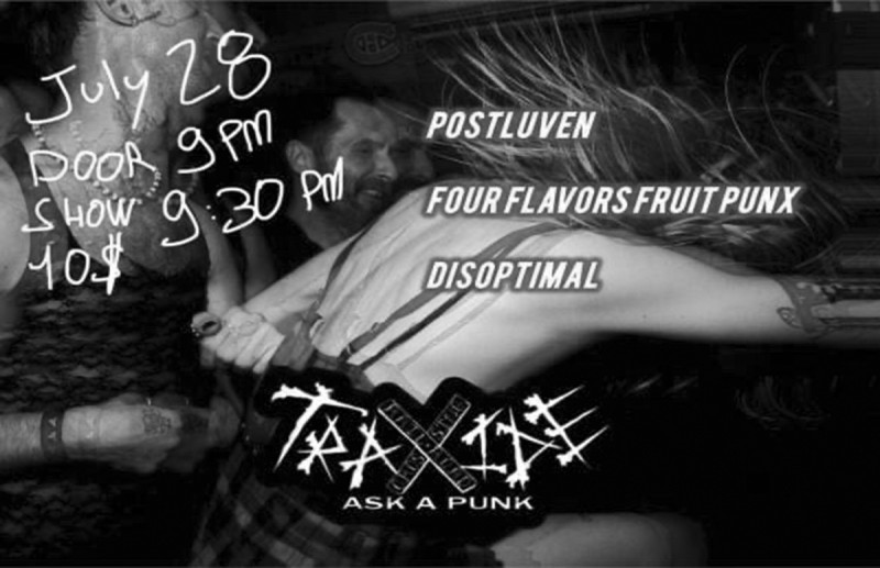 | Event: SUNDAY GIG AT TRAXIDE JULY 28 ( DISOPTIMAL, F.F.F.P, POSTLUVEN) |