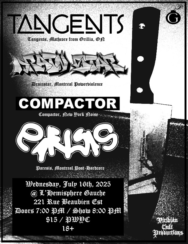 | Event: Tangents, Drainstar, Compactor, Paresis @ L'Hemisphere Gauche - July 16th, 2025 |