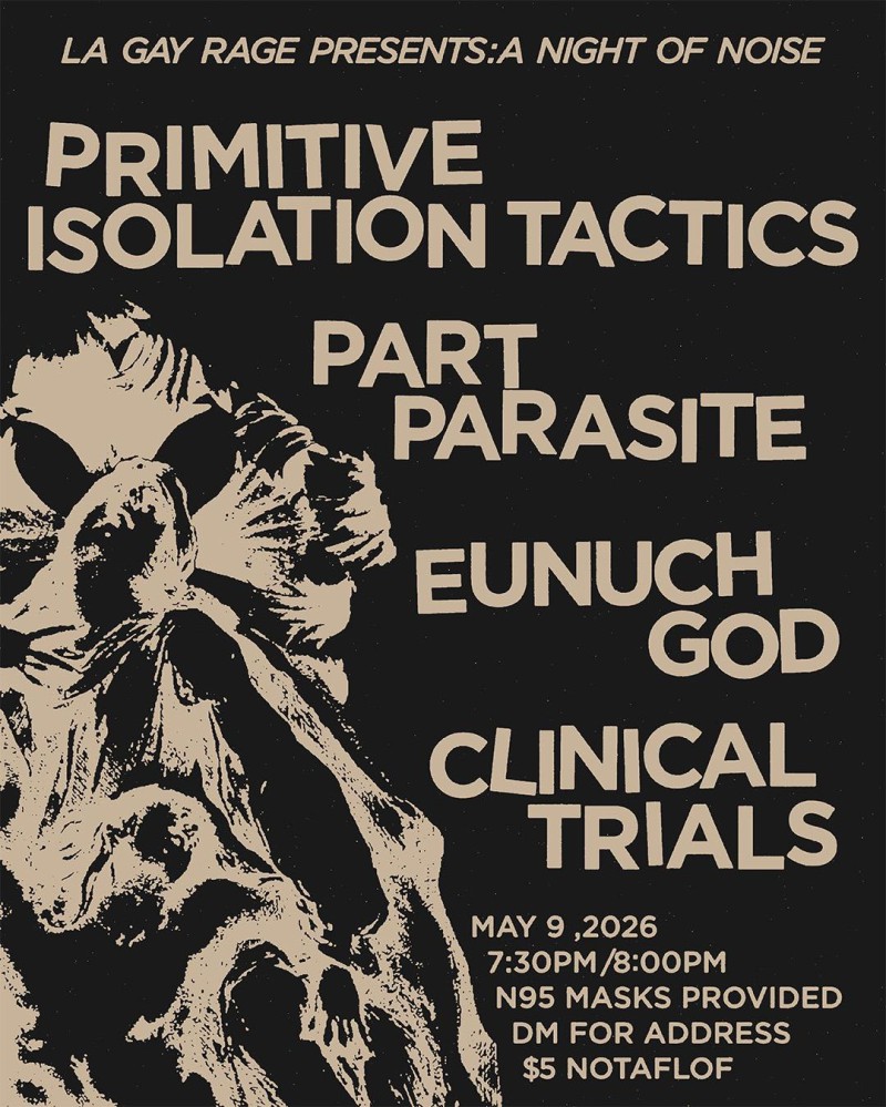 | Event: La Gay Rage Noise Night Vol.7: Primitive Isolation Tactics, Part Parasite, Eunuch God, Clinical Tria |